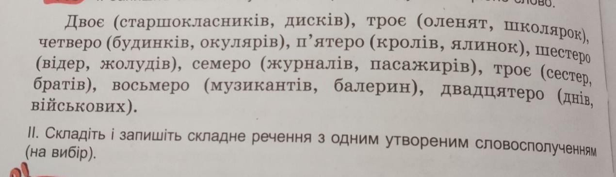 Можна будь ласка українська мова шостий клас друге завдання складіть і запишіть складне речення з одним утвореним словосполученням на вибір...