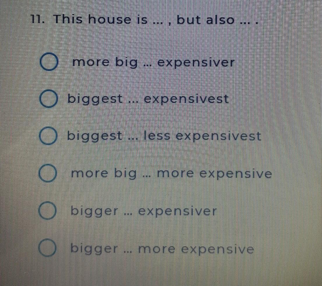 Відбувається порівняння двох будинків. Другий більший за перший (bigger правильна форма), далі йде але, тому ми розуміємо,що будинок дорожчий(more expensive is correct