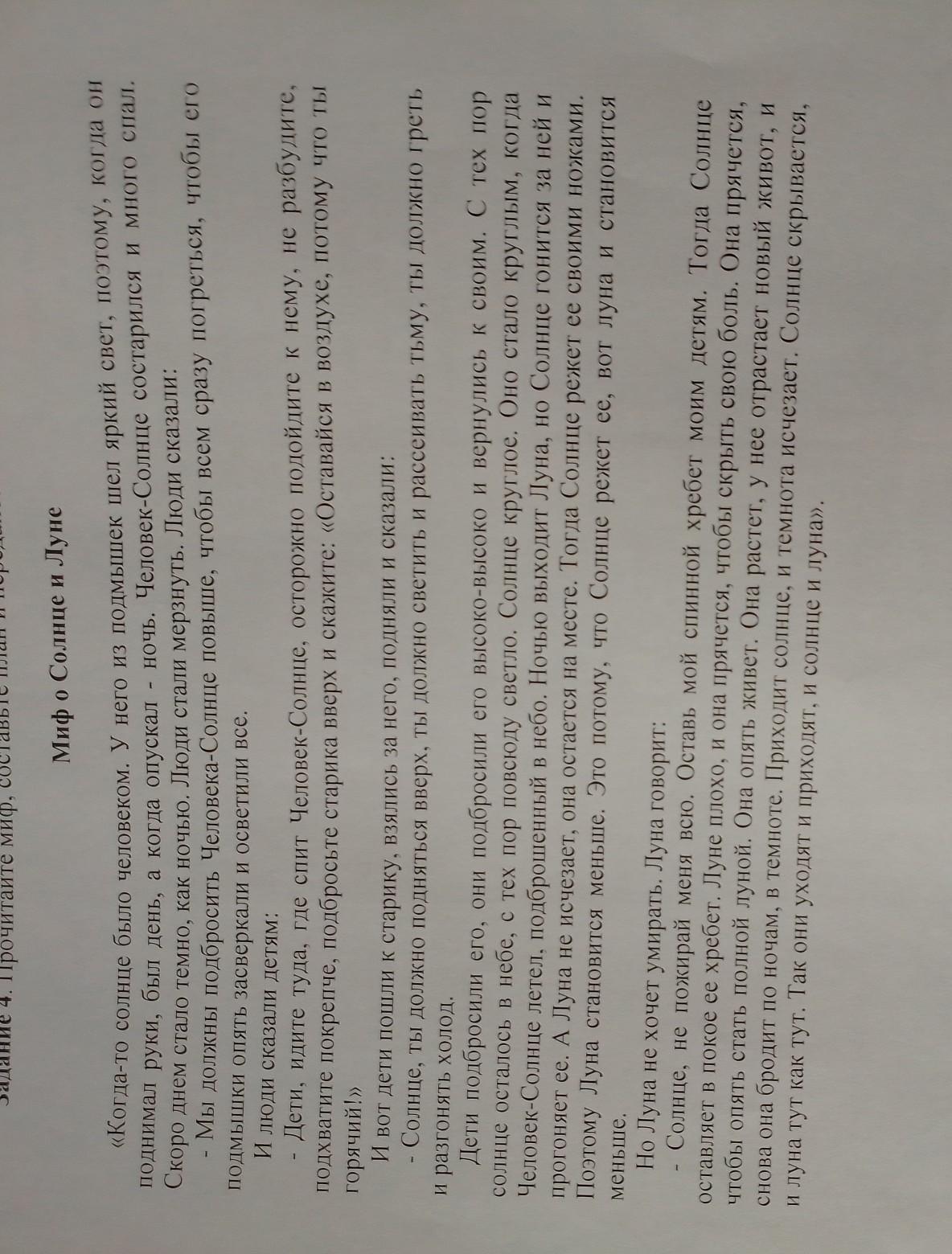 Задание 4. Прочитайте миф, составьте план и передайте письменно содержание текста