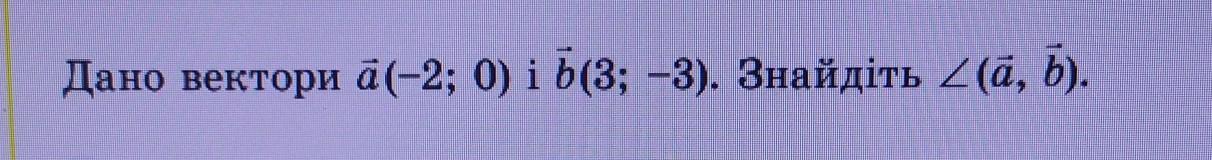 Вектори а(- 2 ; 0 ) і b( 3 ; - 3 ) ; ∠( a^,b ) - ?