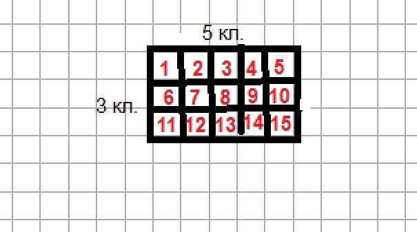 S=a*b, где a и b - стороны прямоугольника a=5 кл., b=3 кл.