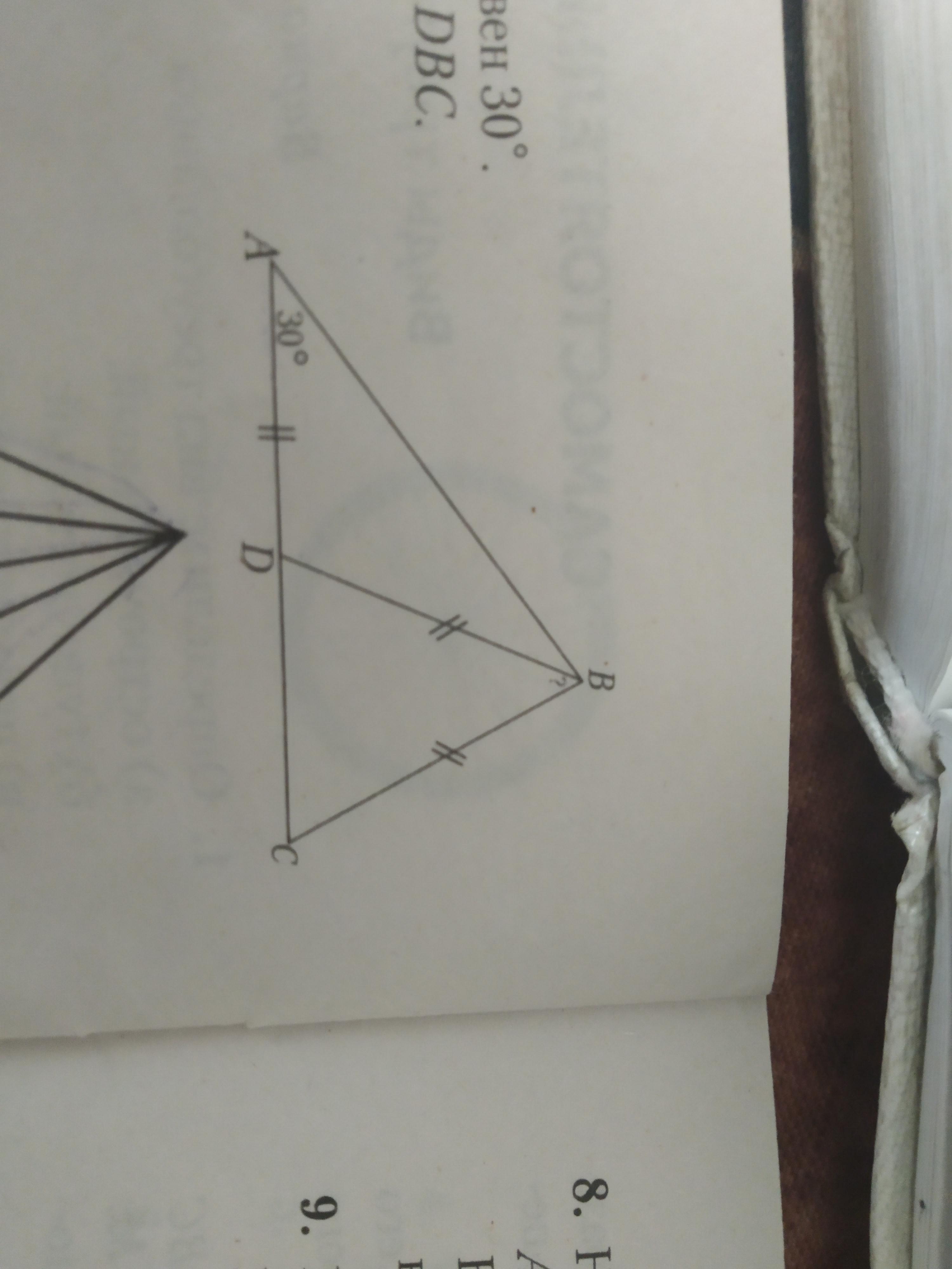 В треугольнике ABC угол А равен 30град .Найдите градусную меру угла DBC.