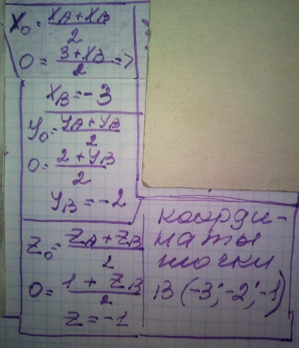 Точка А (3; 2; 1), які координати повинна мати точка В, щоб середина відрізка АВ припадала на початок координат?