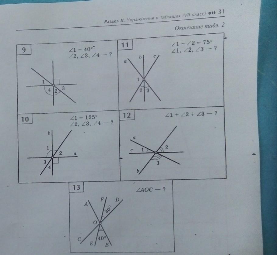 9) ∠2=40°; ∠3=50°; ∠4=90°
