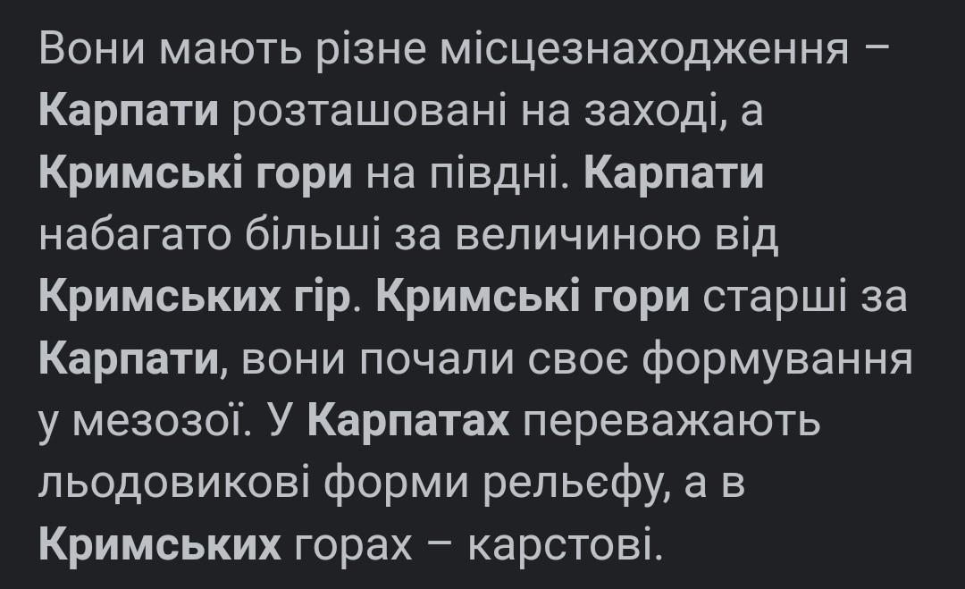 Кримські гори і Карпати відрізняються багато чим Карпати знаходяться на заході україни біля кордонів з Угорщиною, Польщею, і Словаччинею