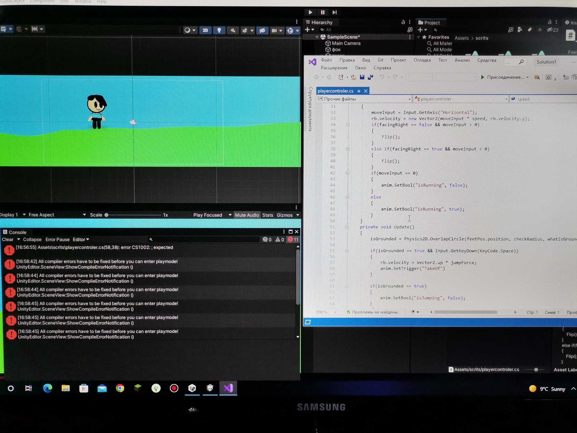 самая первая ошибка пишет, что на 58 строке и на 38 символе ожидалось ";", но его там нет. если не научишься читать ошибки, не сможешь программировать