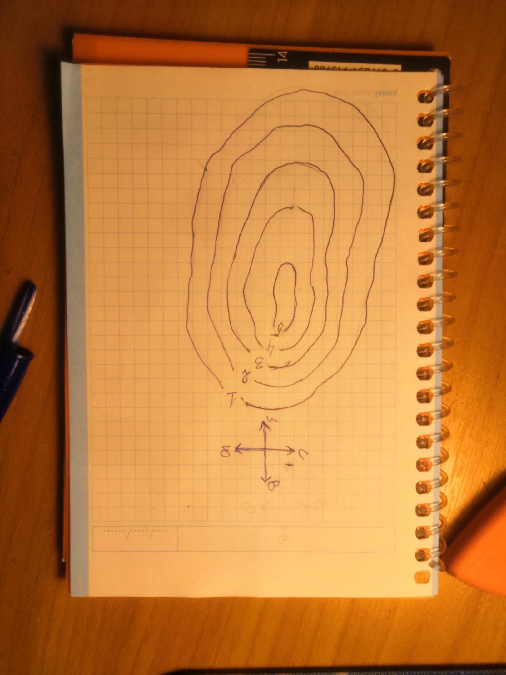 Нарисовать холм относительной высотой 5 метров .Горизонтали проведены через 1 метр.Западный склон пологии ,восточный крутой.