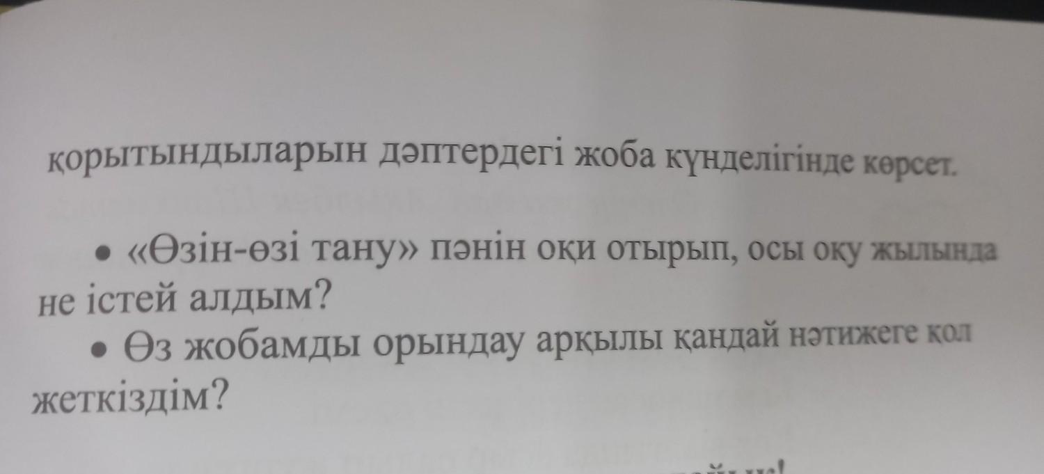 1)Өзін-өзі тану пәніңде мен көп нәрсе біліп алдым.Мысалы:адамды сыйлау,табиғатты құрметтеу,мейірімді болу керек.
