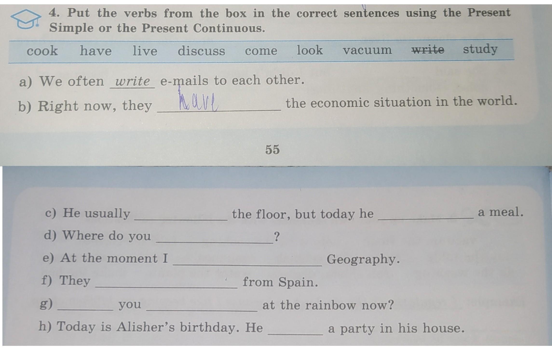 Put the verbs from the box in the correct sentences using the Present Simple or the Present Continuous.