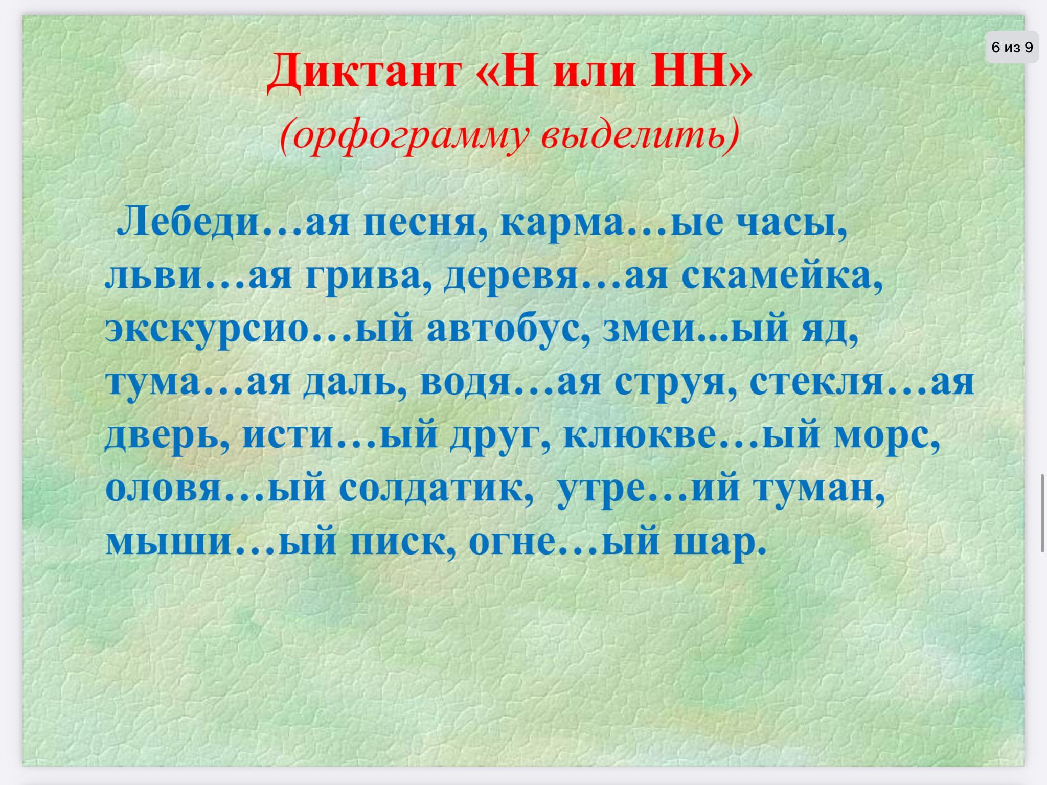 ЛебедиНая песня, кармаННые часы, львиНая грива, деревяННая скамейка, экскурсиоННый автобус, змеиНый яд, тумаННая даль, водяНая струя, стекляННая дверь, истиННый друг, клюквеННый морс, оловяННый солдатик, утреННий туман, мышиНый писк, огнеННый шар