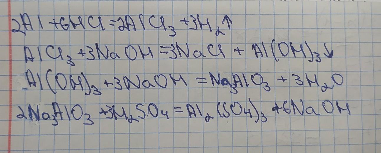 Al->AlCl3->Al(OH)3->Na3AlO3->Al2(SO4)3;