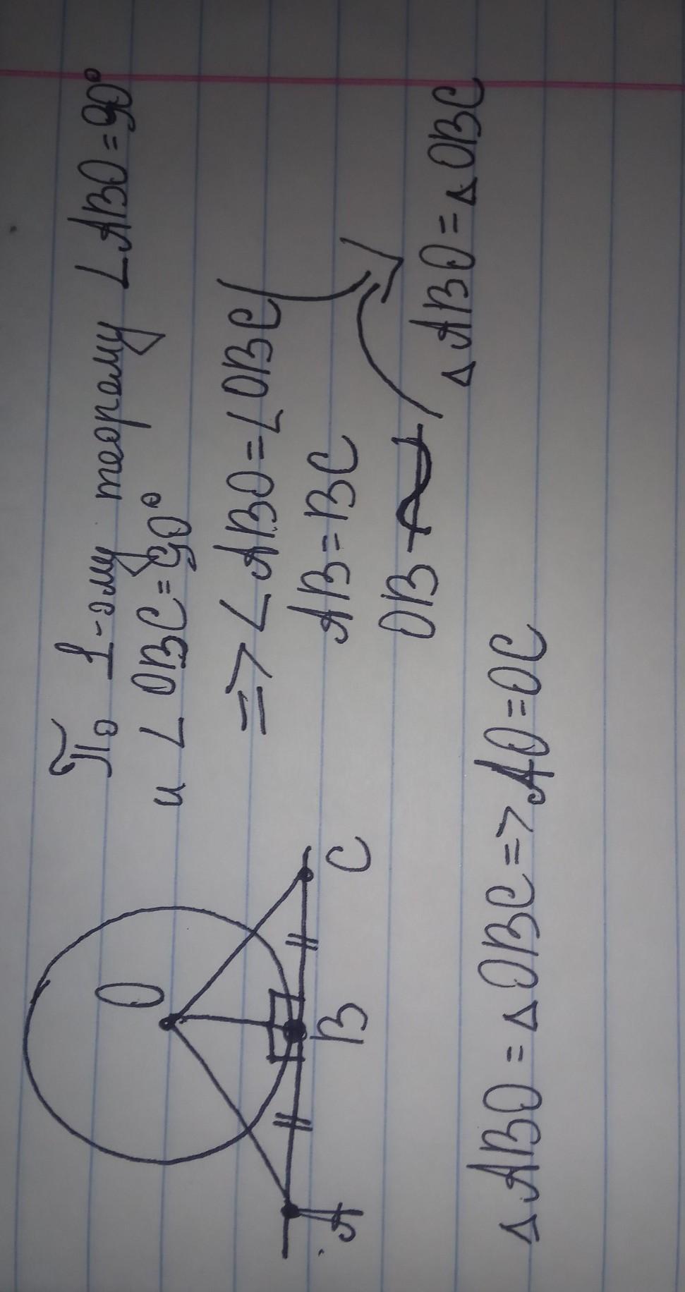Касательная к окружности образует прямой угол с радиусом, проведенным из той же точки.