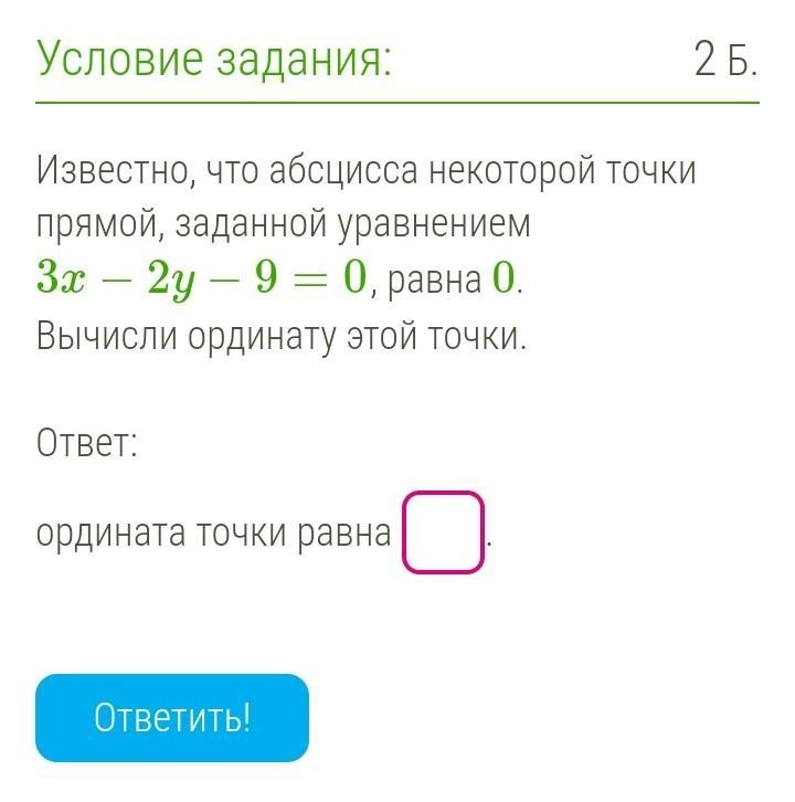 У точки на плоскости есть 2 координаты - абсцисса (х) и ордината (у). В нашем случае абсцисса точки равна 0, то есть х = 0. Нужно найти ординату, то есть, найти у.