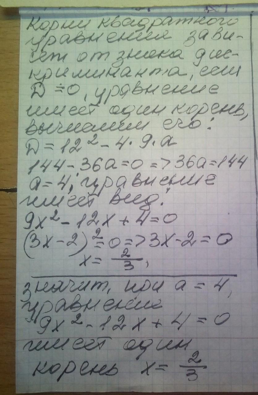 7.При якому значенні a рівняння 9х²-12х+а=0 має один корінь? Знайдіть цей корінь