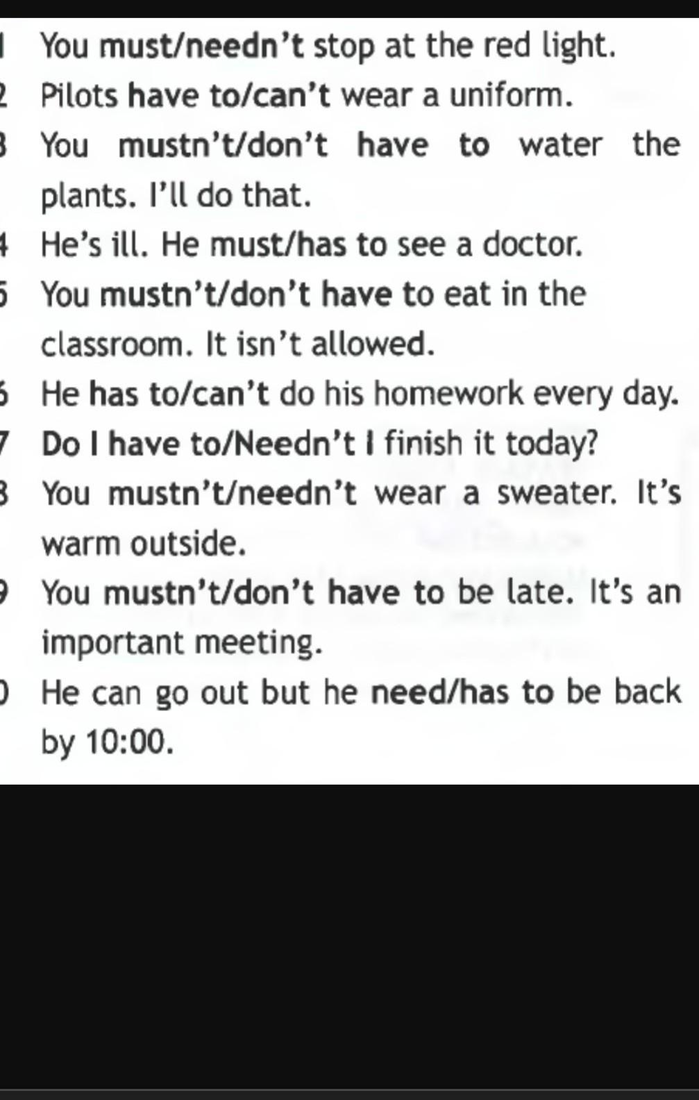 5. You MUSTN'T to eat in the classroom. It's not allowed