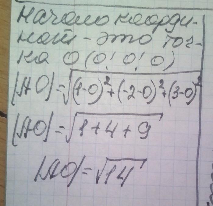Знайти відстань від початку координат до точки А(1; –2; 3)