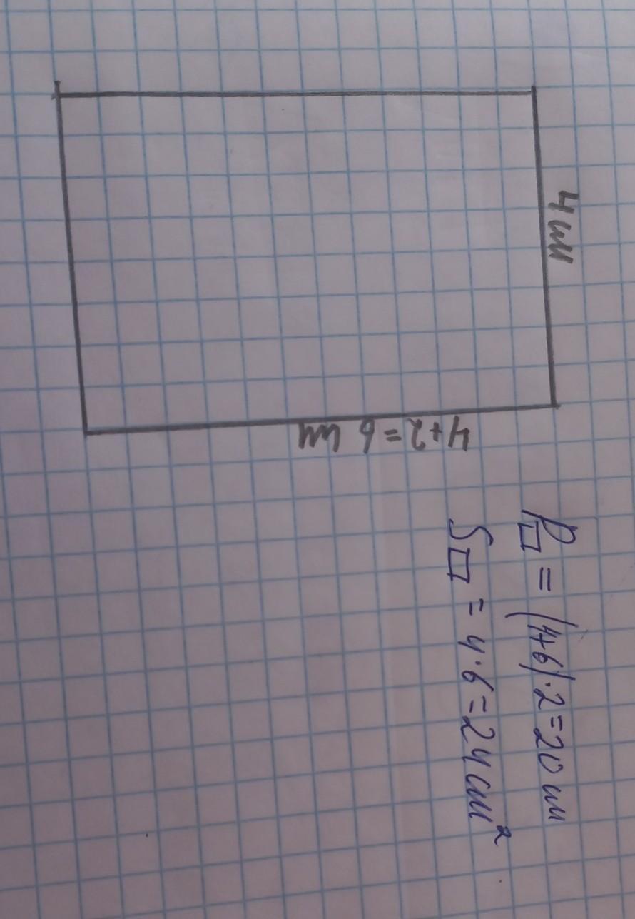 начерти прямоугольник у которого одна сторона на2 см больше другой подпищи стороны найди площадь и периметр. ПОМОГИТЕ ПЛИИЗ