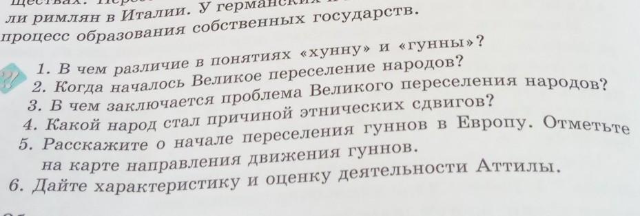 ли римлян в И. процесс образования собств 1. В чем различие в понятиях «хунну» и «гунны» ? 3. В чем заключается проблема Великого переселения народов? 2. Когда началось Великое переселение народов? 5. Расскажите о начале переселения гуннов в Европу. Отметьте 4. Какой народ стал причиной этнических сдвигов? 6. Дайте характеристику и оценку деятельности Аттилы. на карте направления движения гуннов.
