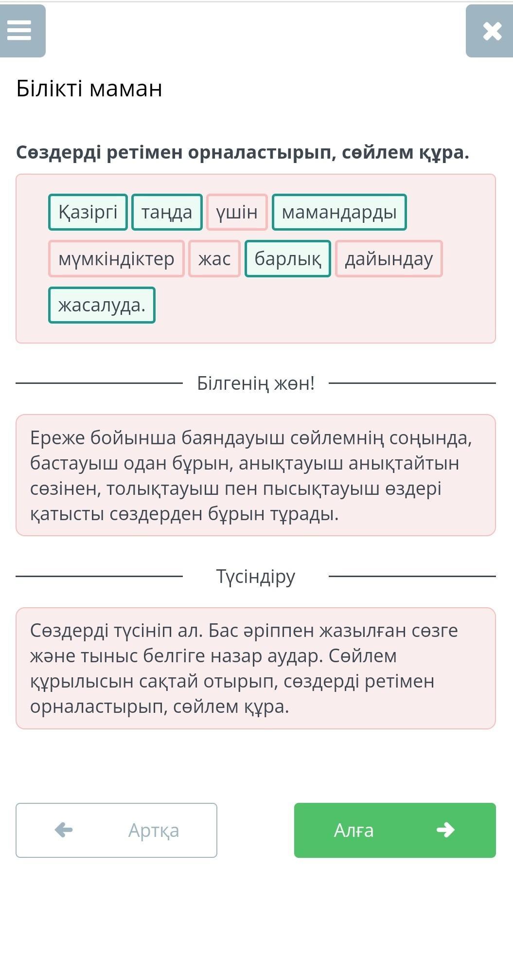 Білікті маман Сөздерді ретімен орналастырып, сөйлем құра. Қазіргі таңда мамандарды барлық жасалуда. жас дайындау мүмкіндіктер үшін