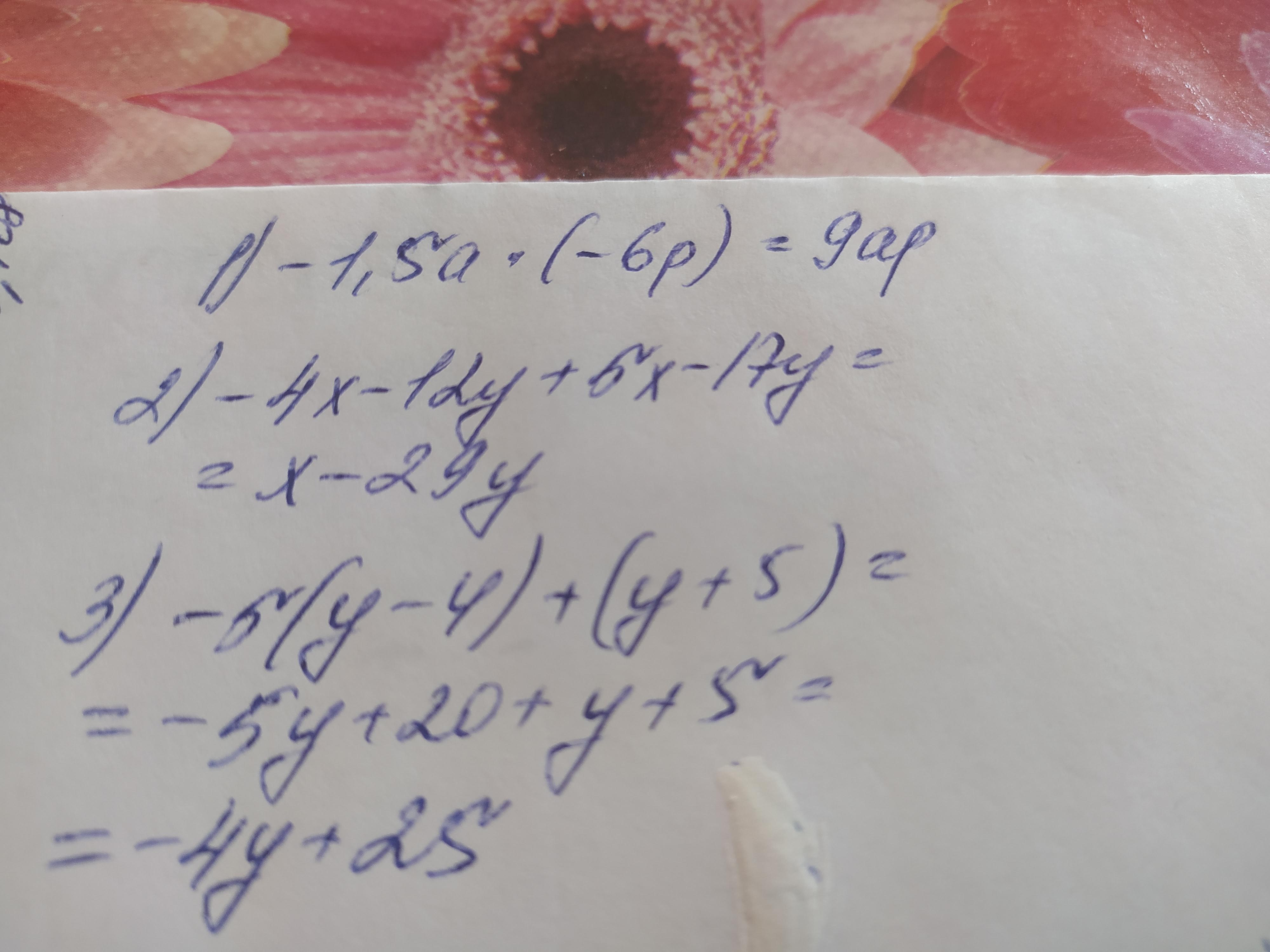 3)-5(y-4)+(y+5)= -5у+20+у+5= -5у+у+20+5= -4у+25