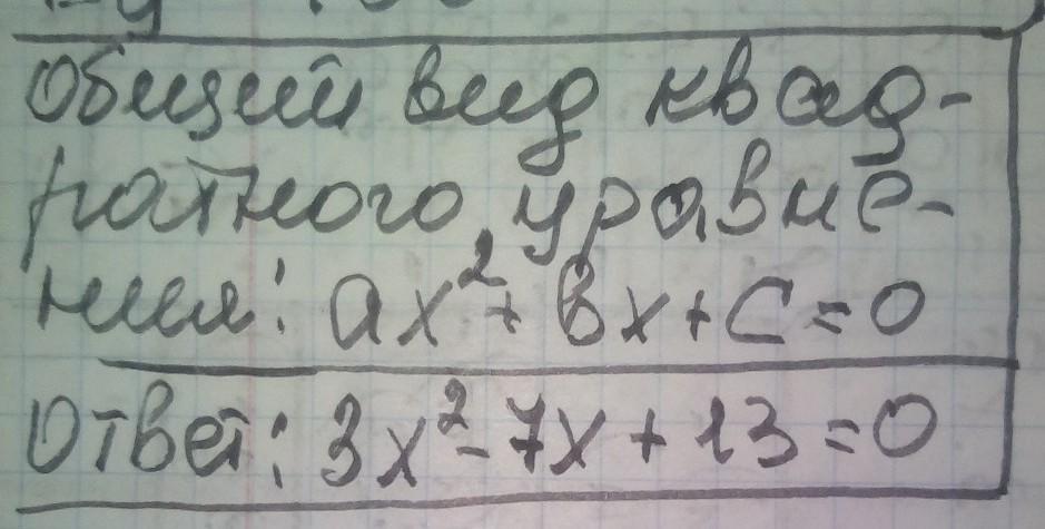 Вкажіть квадратне рівняння, якому відповідають коефіцієнти а=3, b=-7, С=13: —7х2 + 13х + 3 = 0