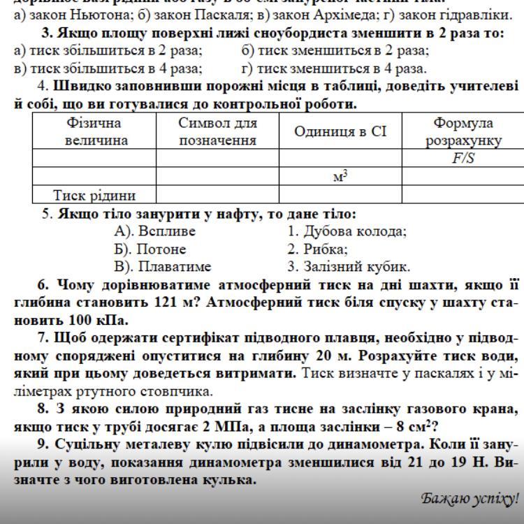 який при цьому доведеться витримати. Тиск визначте у паскалях і у мі-