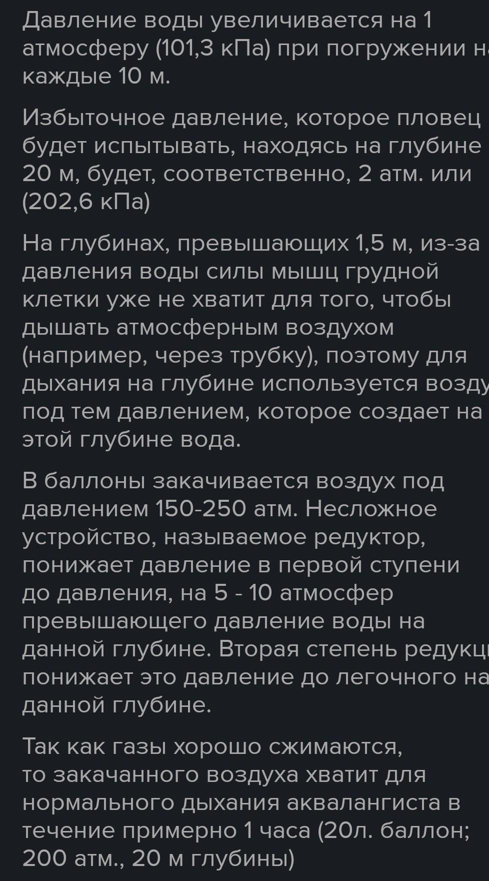 ному споряджені опуститися на глибину 20 м. Розрахуйте тиск води,
