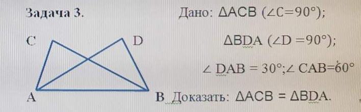 значит треугольники равны по общей стороне АВ и двум углам уг С= уг Д и уг ДАВ= АВС =30