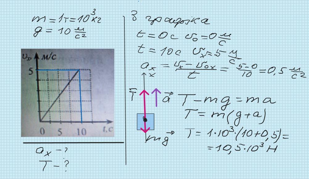 вантаж масою одну тонну піднімають вертикально вгору на малюнку 2 зображено графік залежності проекції швидкості руху від часу визначте прискорення руху і силу натягу троса яким піднімають вантаж