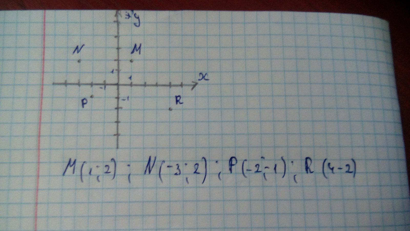 Изобразите координатную плоскость и отметьте на ней точки M (1; 2), N (–3; 2), P (–2; –1), R (4; –2)