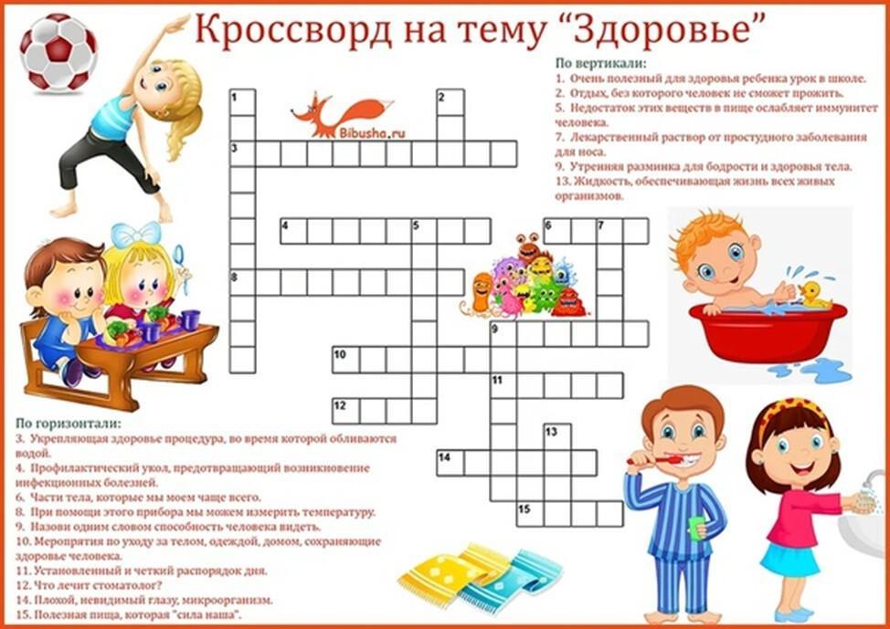 по вертикали:физкультура-сон-витамины-капли-зарядка-вода