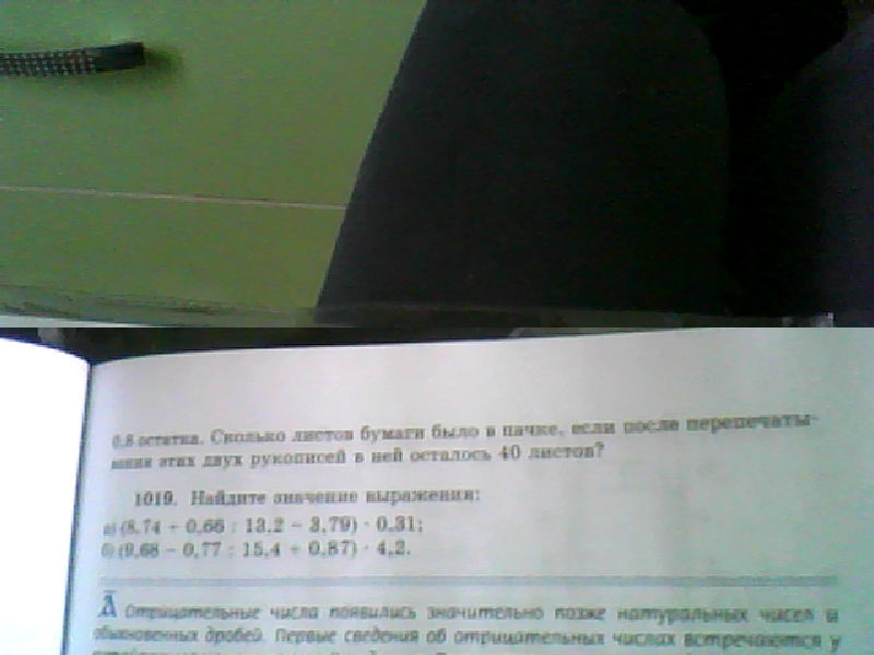 № 1018 Всего листов обозначим за х, тогда: 0,6х+0,8(х-0,6х)+40 =х; 0,6х+0,32х-х=-40; -0,08х=-40; х= -40:(-0,08); х=500 Ответ 500 листов