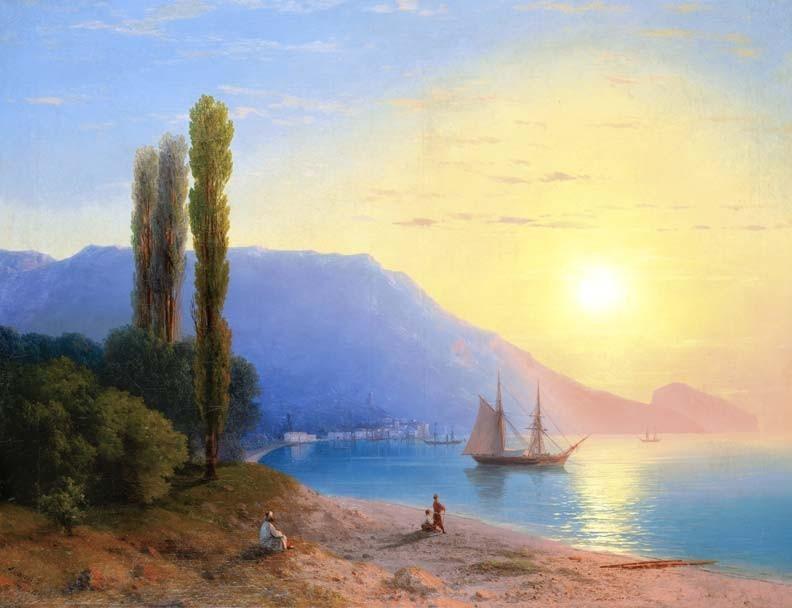 Ми з подругою гуляли по пляжу близько шостої вечора,по тихому,спокійному морю плив корабель,легесенький вітерок пошатував його. Сонце освітлювало голубе небо,напам'ятовувавши прапор рідної землі(України). На пляжу сидів дідусь,який спостерігав за кораблем. Пташки співали свої пісні,сидячі на гілках великих дерев