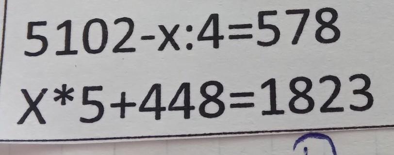 5102-x:4=578\\x:4=5102-578\\x:4=4524\\x=4524*4\\x=18096\\\\\\x*5+448=1823\\x*5=1823-448\\x*5=1375\\x=1375:5\\x=275