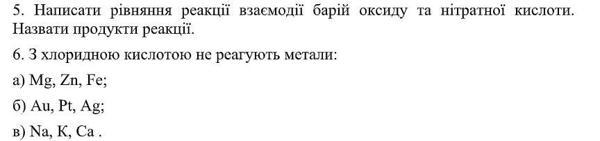 6) Для виконання завдання треба розуміти, що таке таблиця активності металів. Я закріпив. У цій таблиці з права на ліво посилюється активність, тому Pt найНЕактивніший. Усі метали, що знаходяться правіше H₂, а тобто Cu, Hg, Ag та далі не активні, а тому не реагують з кислотою.
