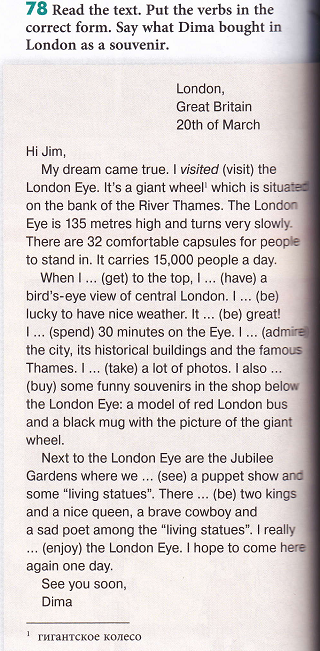 1. What did Dima visit yesterday? - The London Eye.