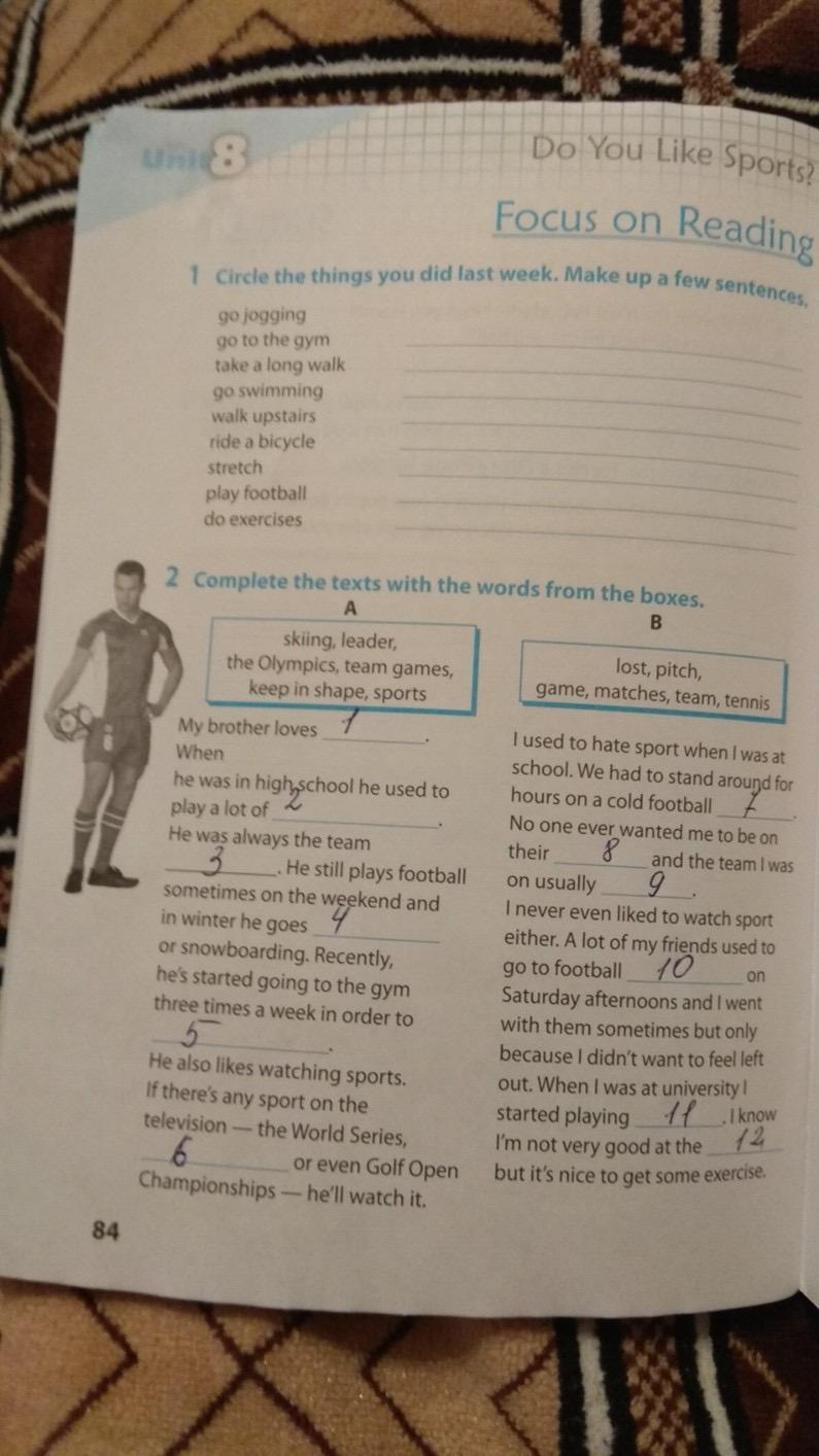 AA 1. sports 2. team games 3. leader 4.skiing 5. keep in shape 6. the Olympics