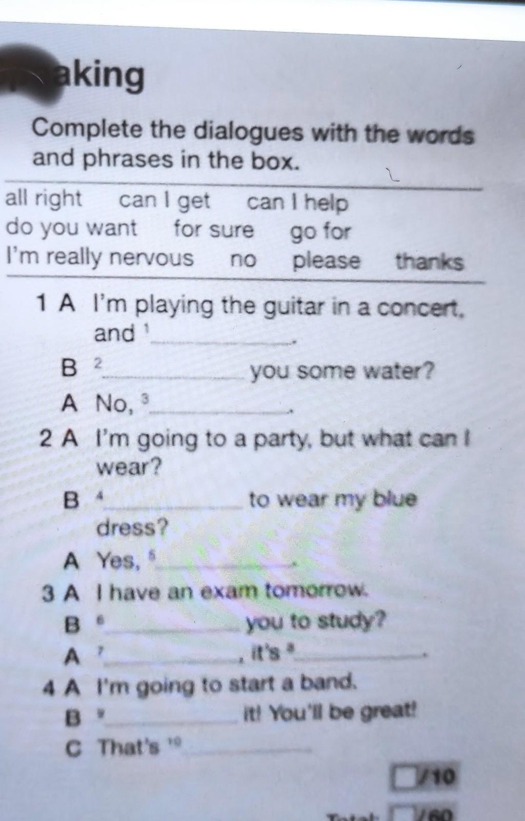 1. Im really nervous 2.can i get 3. thanks4.do you want5.please 6.can i help you to study 7.no8.all right9.go for 10. сори я хз что здесь