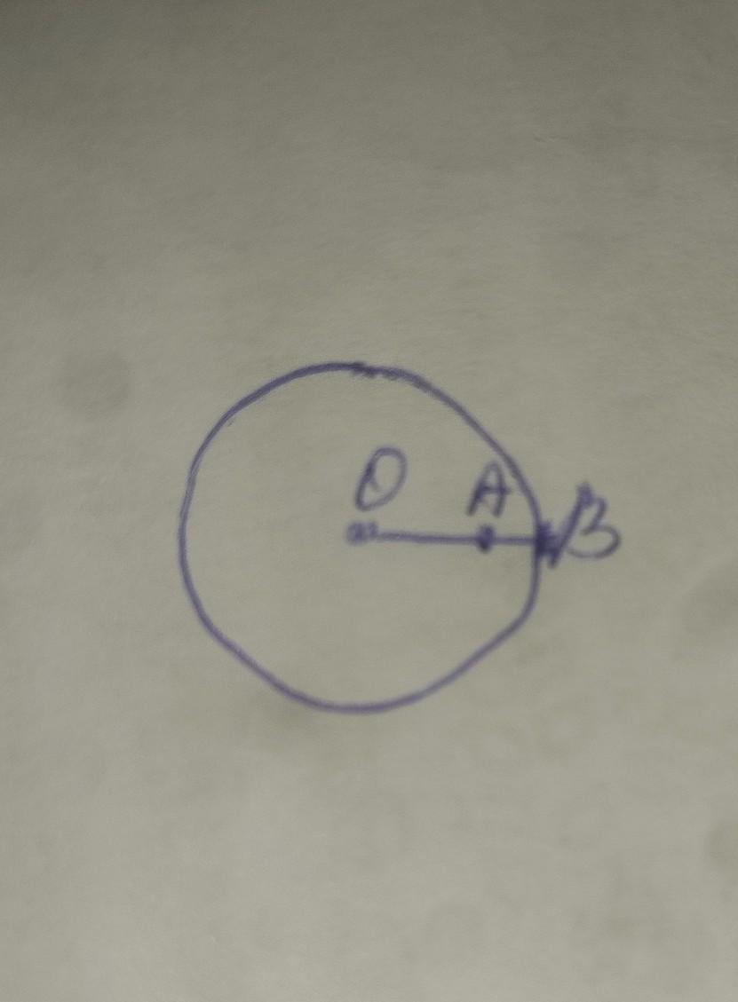 Усередині кола, тому що OA менше радіусу і OA буде хордою.