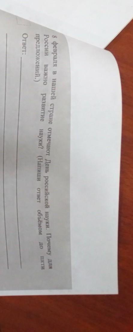 ОТВЕТ: Для России развитие науки очень важно. Так как если бы её не было, техники не бывало бы. Наука очень важная часть для ученика. Россия крупная страна в которой большое количество людей. Если бы не было развития науки, Россия бы не развивалась.