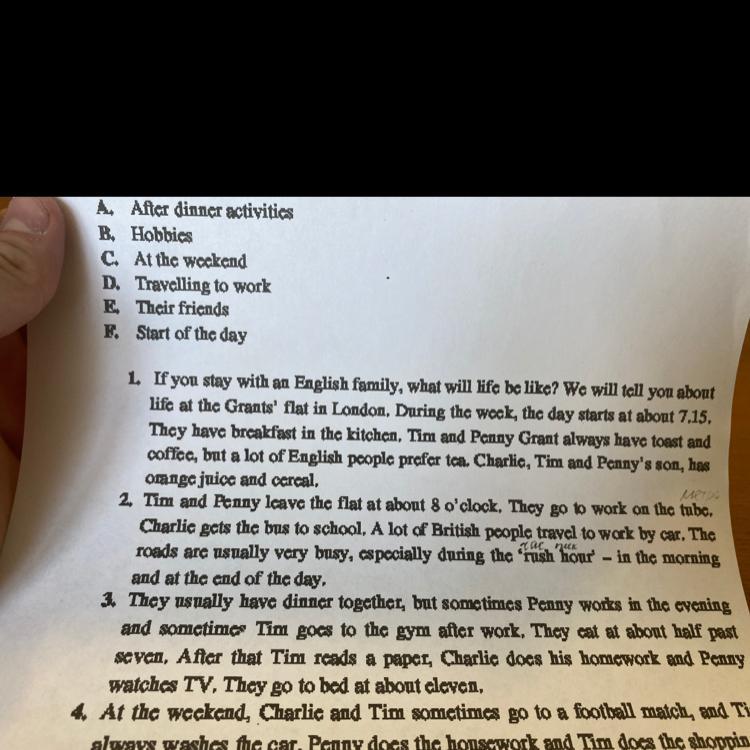 2. Tim and Penny lcave the flat at about 8 o'clock, They go to work on the tube.
