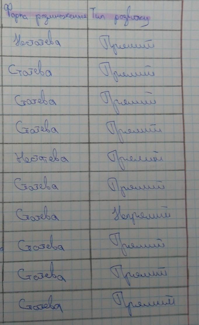 У вигляді таблиці напсати приклади тварин у яких прямий розвиток і не прямий розвиток з повним і не повним перетворенням