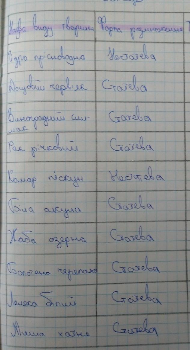 у таблиці тільки помилка,а саме: гідра і статево ,і не статево непрямий. Комар статево