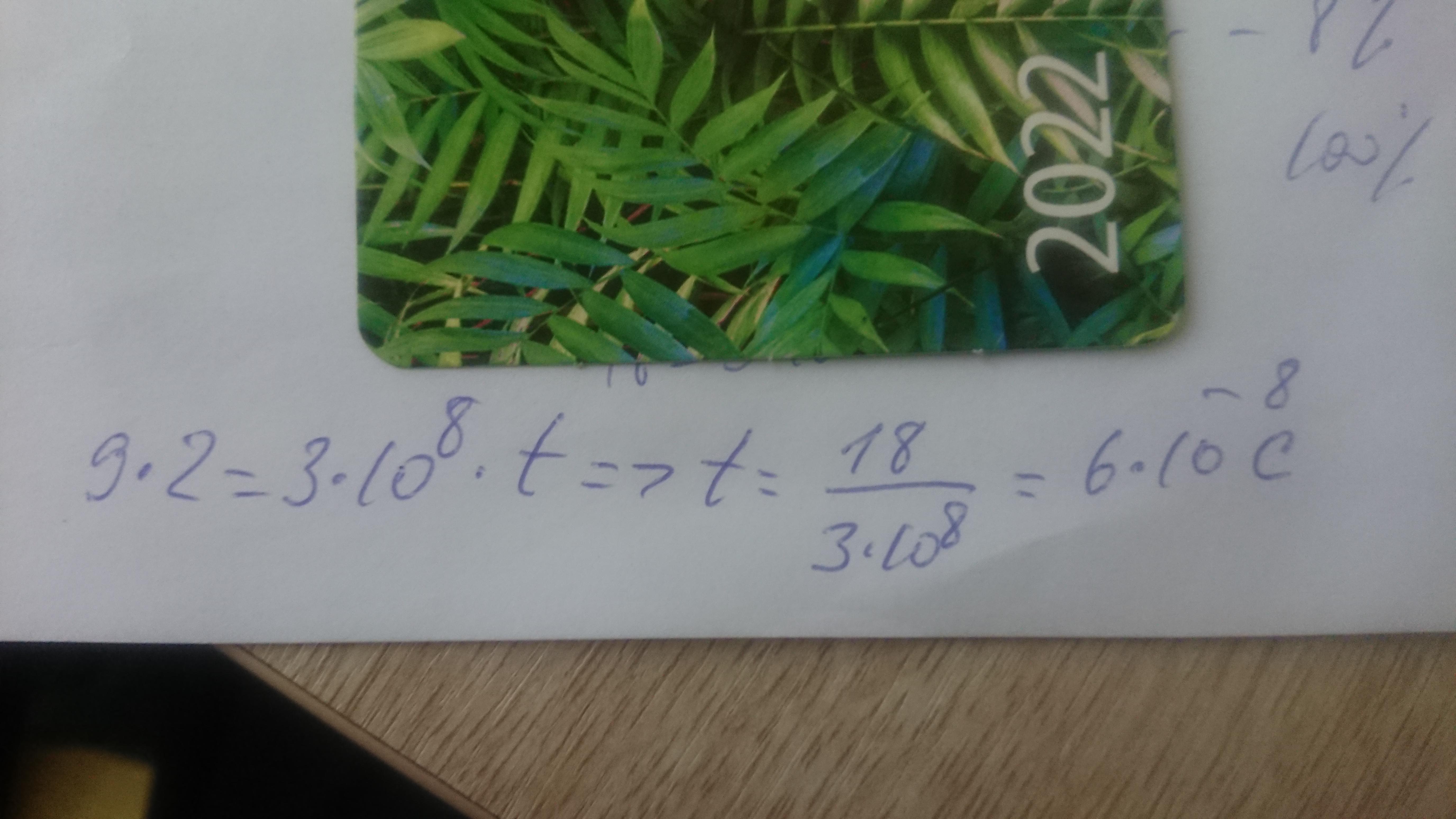 Сигнал идет до самолета и обратно, то есть расмтояние 2*9 км. В итге 6*10^-8 с. См фото.
