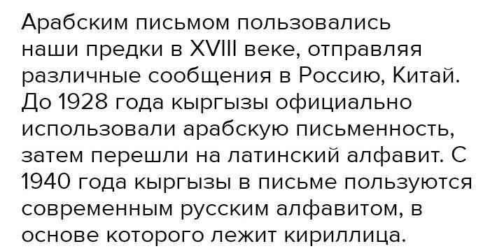 1. Как развивалось письмо кыргызов? 2. Что послужило толчком к развитию народных знаний кыргызов?