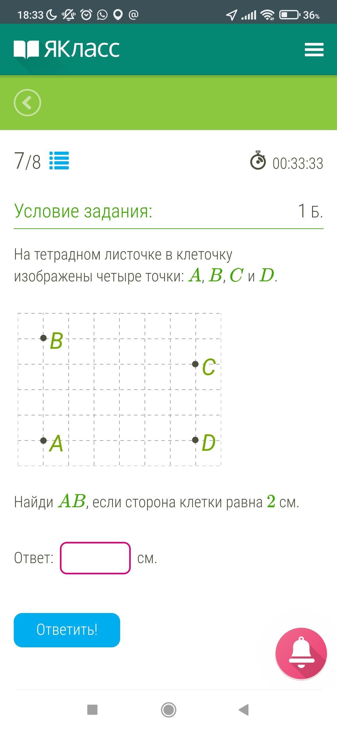 між точками А і В 4 клатинки. в умові сказано, що сторона однієї клітинки 2 см. тому 4*2=8.