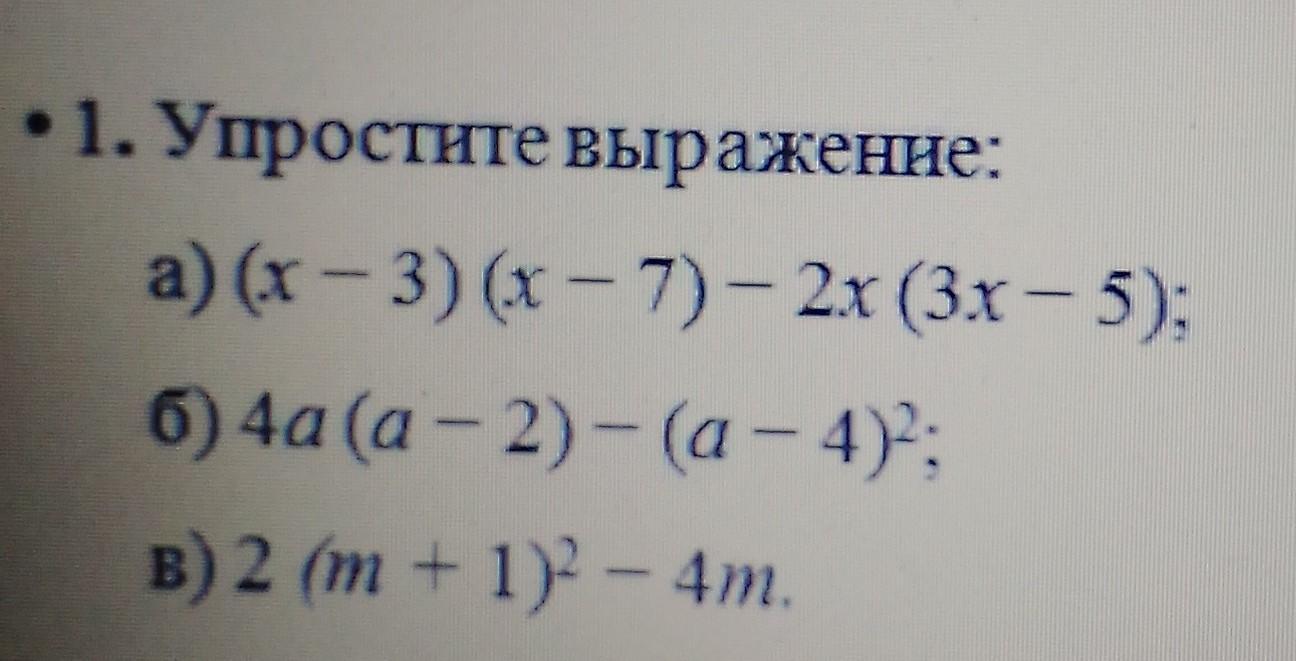а)(x-3)(x-7)-2x(3x-5)=x²-7x-3x+21-6x²+10x=-5x²+0+21=-5x²+21
