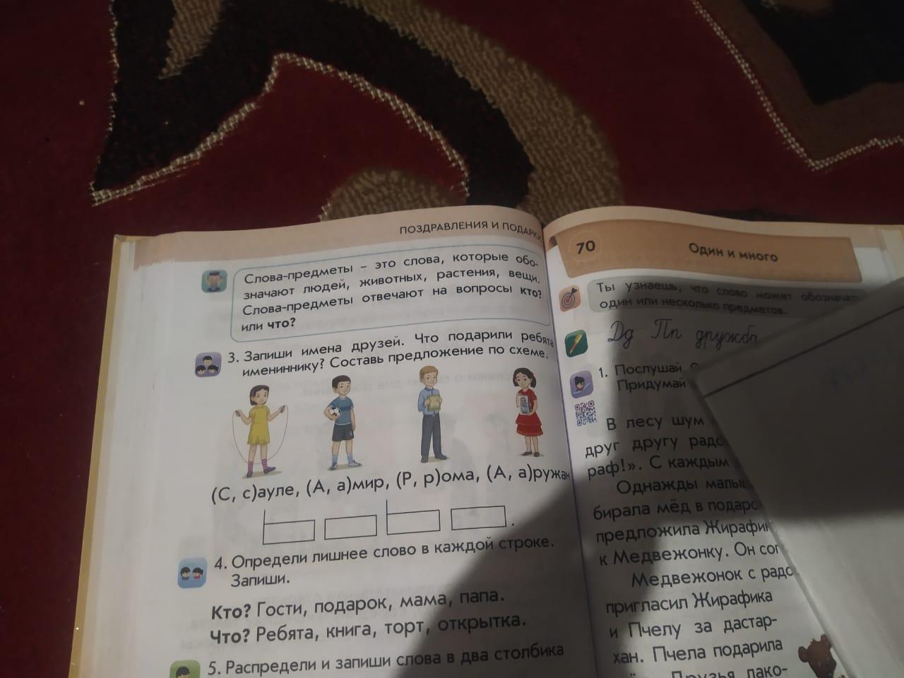 Сауле-скакалку Амир-мяч Рома-книгу Аружа-куклу