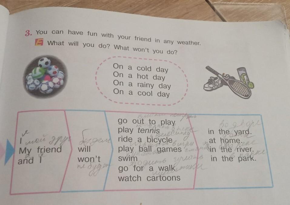 3. You can have fun with your friend in any weather. What will you do? What won't you do?