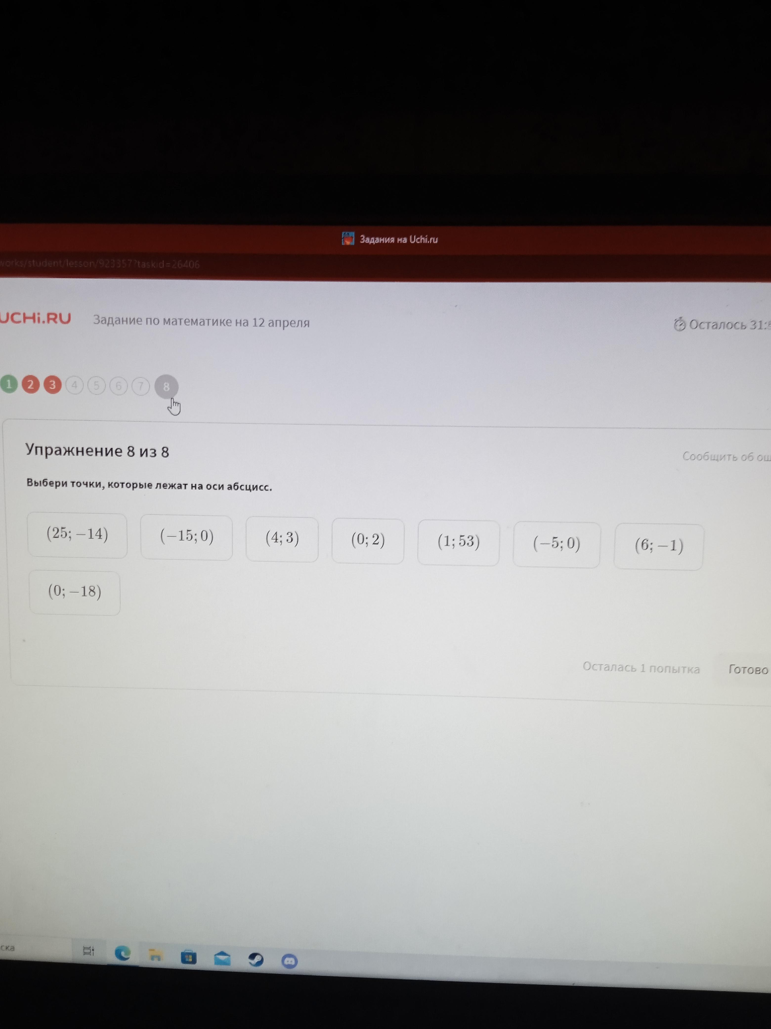 Точка лежит на оси абсцисс только в том случае, если её ордината (Y) равна 0.